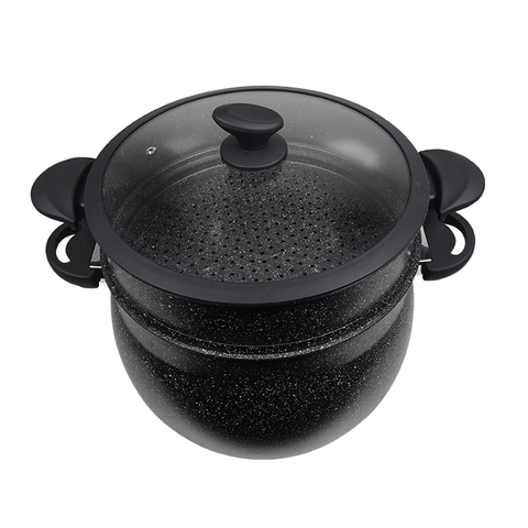 Klassieke Zwarte Couscousier Kookgerei Met Stalen Deksel Milieuvriendelijke Aluminium Cirkel Pot Voor Soep Inductiebodem Voor Koken
