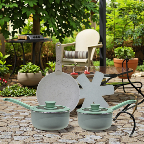 Moderne Groene Metalen Kookgerei Set Duurzaam Aluminium En Gegoten Aluminium Keukengerei Voor Thuisgebruik Voor Stoomkoken