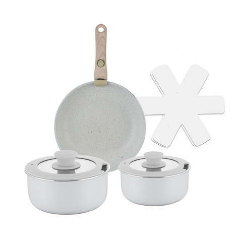 Moderne En Klassieke Gegoten Aluminium Kookgerei Set Met Hittebestendige Bakpannen En Soeppotten Glazen Gebruiksvoorwerpen Gasfornuis Compatibel